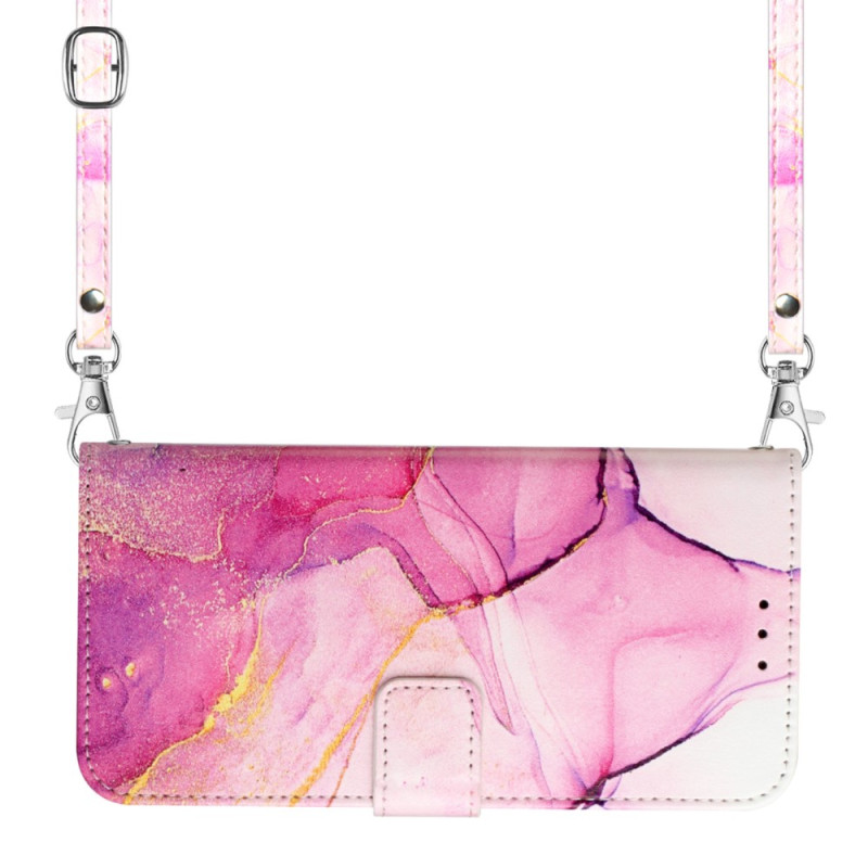 Cette housse Marbre, avec bandoulière, assure la protection optimale et multi-fonctionnelle de votre Samsung Galaxy S23 FE.