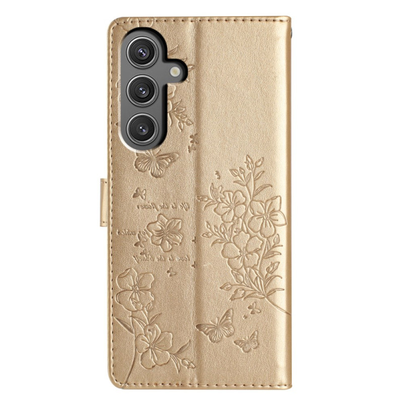 Cet étui pour Samsung Galaxy S24 FE est élégamment conçu avec des motifs de papillons et de fleurs.