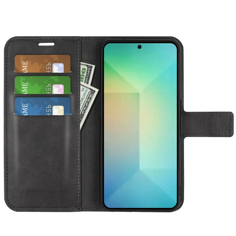 Son design pratique inclut un portefeuille avec 3 emplacements pour cartes et un compartiment pour billets, ainsi qu'un support pliable pour un visionnage confortable.