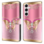 Découvrez notre élégant étui portefeuille pour Samsung Galaxy S25 5G. Fabriqué en cuir PU de haute qualité, il arbore un magnifique motif de papillon rose et doré en 3D.