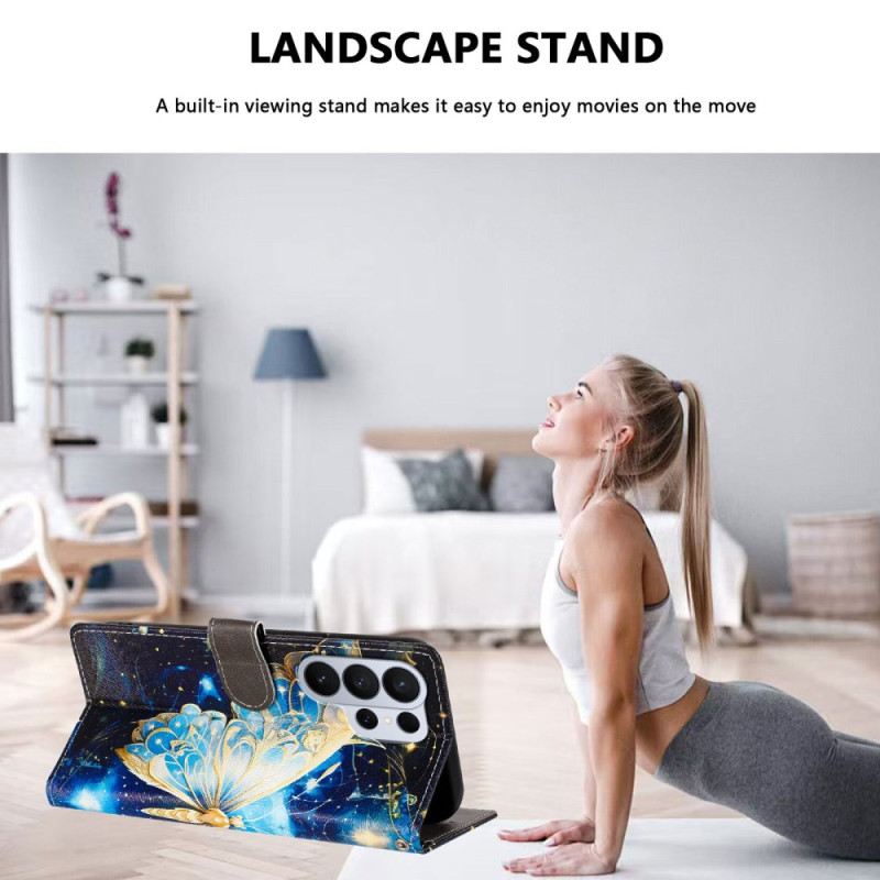 Protégez votre Samsung Galaxy S26 Ultra avec style grâce à cet étui portefeuille élégant orné d'un magnifique motif papillon. Doté de compartiments pour cartes, d'un support ajustable et d'une dragonne pratique.