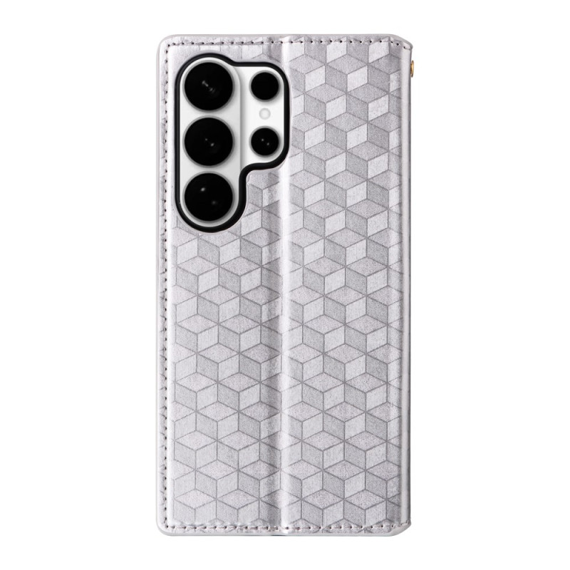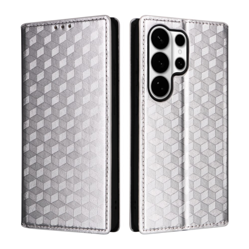 Étui portefeuille élégant en cuir PU avec motif losange 3D pour Samsung Galaxy S26 Ultra. Doté de 2 emplacements pour cartes, 1 compartiment pour billets et une fonction support mains-libres. Fermeture magnétique sécurisée et protection intégrale à 360°.