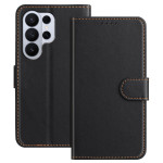 Étui portefeuille élégant pour Samsung Galaxy S26 Ultra alliant style et protection. Design avec support mains-libres, 3 emplacements pour cartes et poche pour espèces. Fermeture magnétique sécurisée et dragonne détachable incluse.