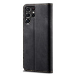 Protégez votre Samsung Galaxy S26 Ultra avec style grâce à cette coque élégante au design rétro texture jeans. Dotée d'un support mains libres intégré et de rangements pratiques pour cartes et billets, elle allie protection complète et fonctionnalité.