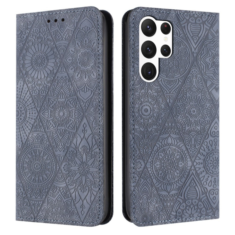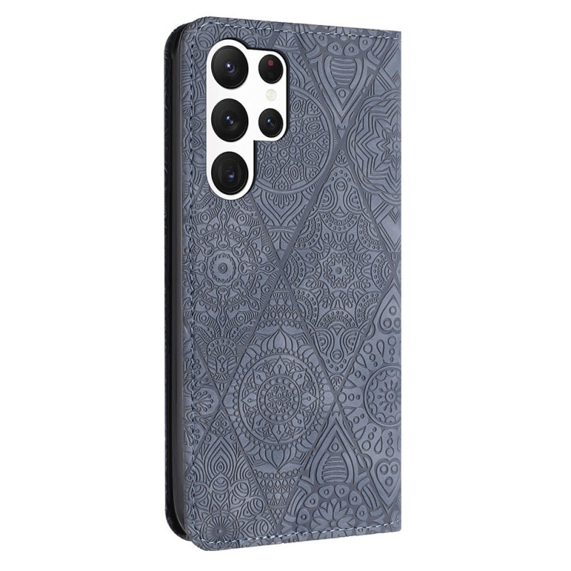 Étui portefeuille élégant en cuir PU avec motif floral imprimé pour Samsung Galaxy S26 Ultra. Doté de 2 fentes pour cartes, 1 compartiment pour billets, support ajustable et fermeture magnétique puissante pour une protection complète au quotidien.