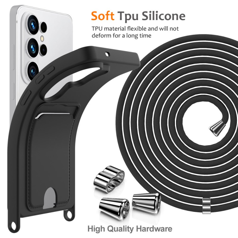 Protégez votre Samsung Galaxy S26 Ultra avec élégance grâce à cette coque en silicone liquide ultra-douce. Dotée d'un porte-carte intégré et d'une lanière ajustable de 160cm, elle allie praticité et protection optimale pour votre quotidien.