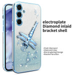 Protégez votre Samsung Galaxy S26 5G avec style grâce à cette coque élégante ornée de fleurs éternelles, strass et paillettes. Son support libellule intégré permet un visionnage mains libres, tandis que le matériau TPU souple assure une protection optimale.