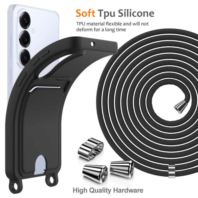 Protégez votre Samsung Galaxy S26 avec style grâce à cette coque en silicone liquide ultra-douce. Son design pratique intègre un porte-carte et un cordon ajustable pour un usage mains libres au quotidien.