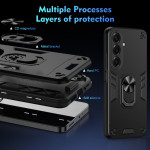 Protégez votre Samsung Galaxy S26 avec cette coque robuste en PC et TPU. Dotée d'un anneau support rotatif ajustable et d'un design à rebords surélevés, elle assure une protection complète de l'écran et de la caméra. Compatible avec les supports voiture.