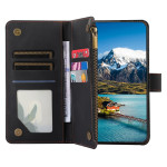 Étui multifonction pour Samsung Galaxy S26 5G offrant 9 emplacements pour cartes, 2 poches pour billets et une section zippée. Doté d'une fonction support mains libres, d'une fermeture magnétique sécurisée et d'une dragonne détachable.