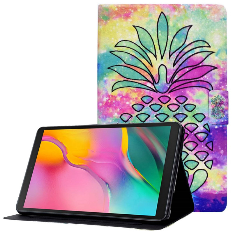 Découvrez notre housse de tablette réglable pour Samsung Galaxy Tab A 10.1 (2019) , avec un porte-carte intégré et un motif d'ananas coloré.