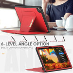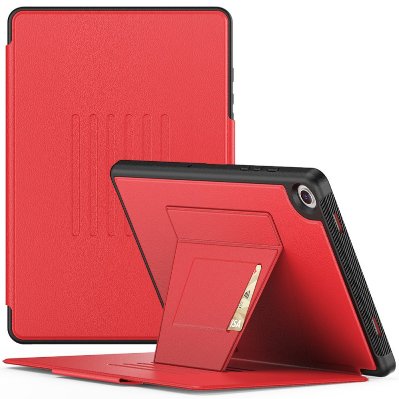 L'étui est doté d'un support pratique pour une utilisation mains libres, d'une fonction de veille/réveil automatique et d'un emplacement pour carte à l'arrière.