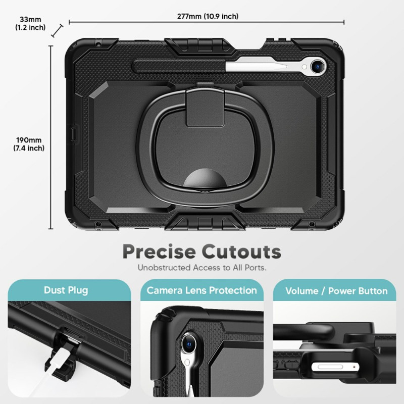 • Coins renforcés : Conception améliorée des coins offrant une défense robuste contre les chutes, les chocs et la poussière, assurant la sécurité de votre tablette