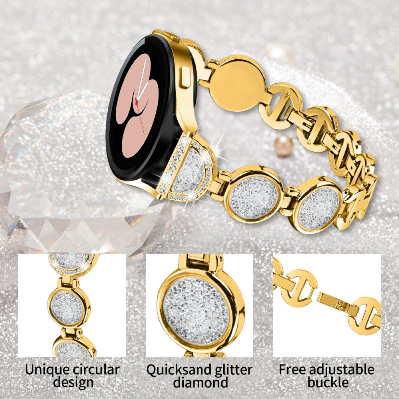 Découvrez notre bracelet en métal pour Samsung Galaxy Watch FE 40mm. Son design unique avec motif circulaire et décoration en strass scintillants offre élégance et style.