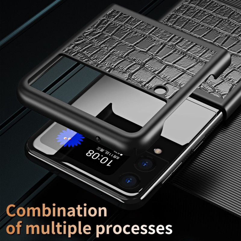 Une coque de style peau de crocodile entouré d'une bande en silicone pour sécuriser votre Samsung Galaxy Z Flip 4 de façon optimale.
