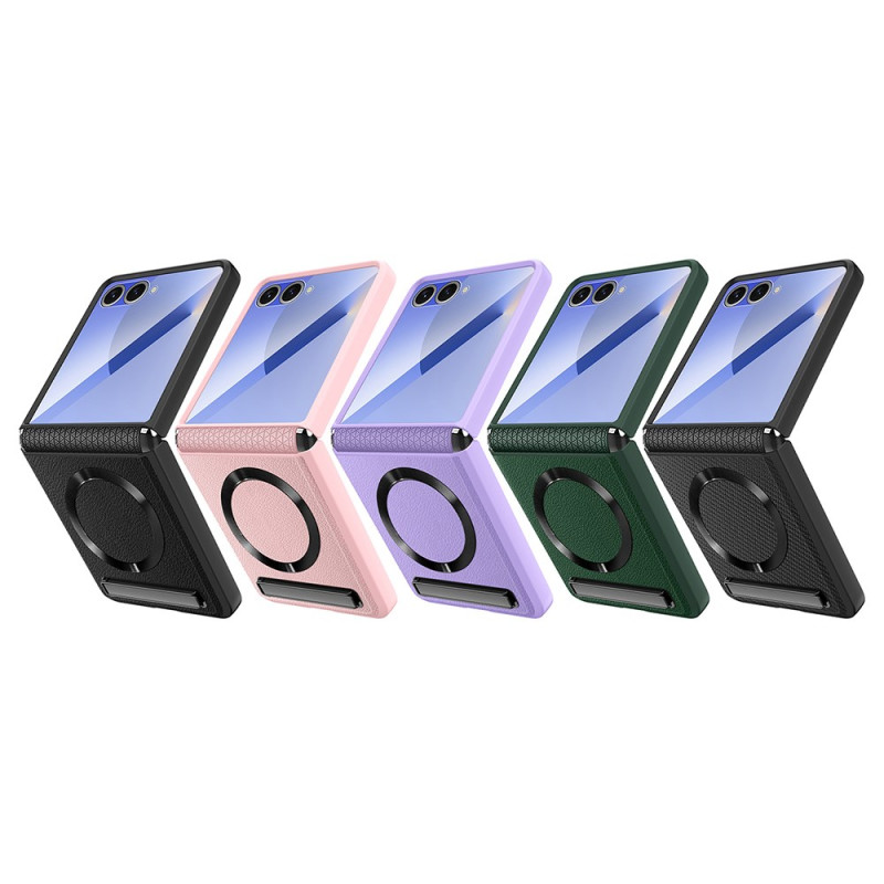 Découvrez notre coque de protection innovante pour Samsung Galaxy Z Flip 7 5G. Dotée d'un anneau magnétique compatible MagSafe au motif unique, elle offre une protection fiable en PC+PU, un support intégré et une accessibilité totale. Inclut des films protecteurs pour l'écran et l'objectif.