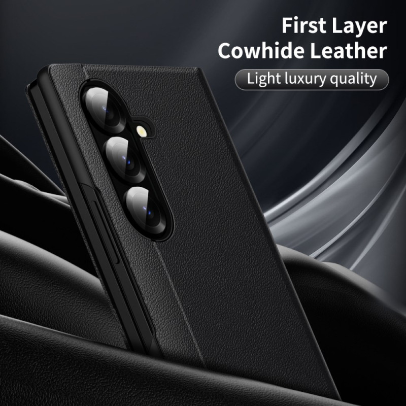 Découvrez notre housse en cuir élégante pour Samsung Galaxy Z Fold 7 5G. Dotée d'une fenêtre intelligente pour un accès rapide, d'un porte-cartes pratique et d'une fonction support, elle allie fonctionnalité et protection.