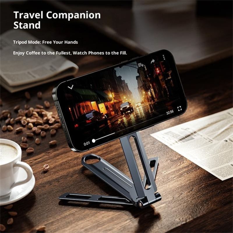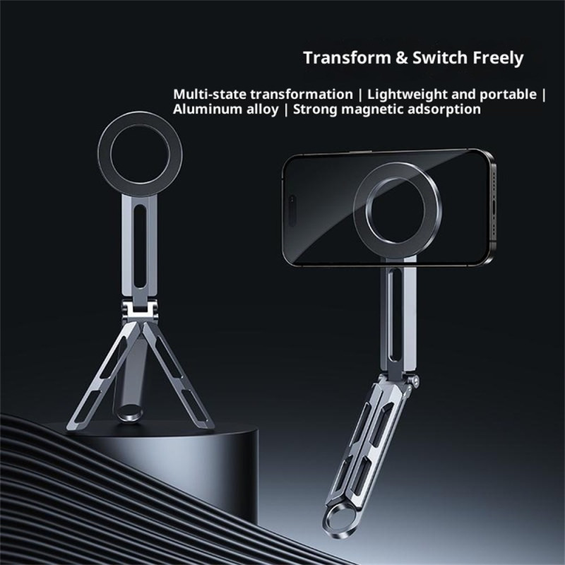 Conçu pour les professionnels en déplacement, ce support élimine la friction de la fixation filaire grâce à la technologie MagSafe. Fabriqué en alliage d'aluminium durable, il assure une structure stable et un poids plume de 100 grammes. Son design entièrement pliable (15x6.5x2.5cm) facilite le rangement dans une mallette ou un sac. Le système MagSafe intégré permet une fixation magnétique instantanée et sécurisée du téléphone. Ce support s'adapte aux smartphones de 4 à 7 pouces, offrant une solution mains libres élégante pour le bureau ou la table de voyage.