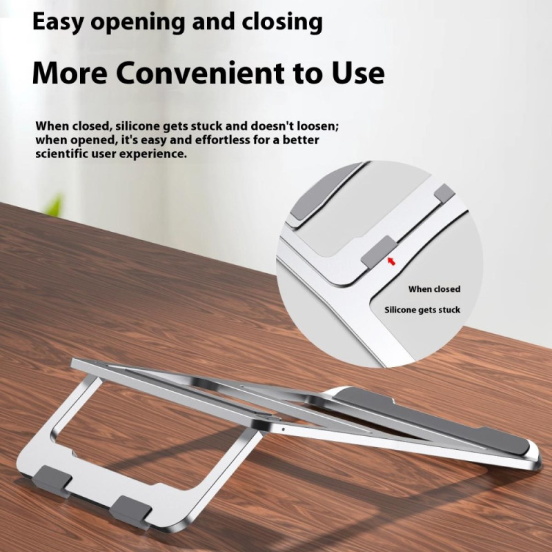 Le bien-être de l'utilisateur et l'optimisation des performances de l'appareil sont les deux fonctions clés de ce support. Fabriqué en alliage d'aluminium épaissi, il garantit une base robuste pour les ordinateurs portables et tablettes jusqu'à 17.3 pouces. Le design ouvert favorise la circulation de l'air, contribuant à une meilleure dissipation thermique. En élevant l'écran, il corrige l'angle de vue, réduisant ainsi efficacement les tensions cervicales et oculaires. Sa conception pliable et légère (260g) le rend facile à transporter pour une utilisation au bureau ou en extérieur.