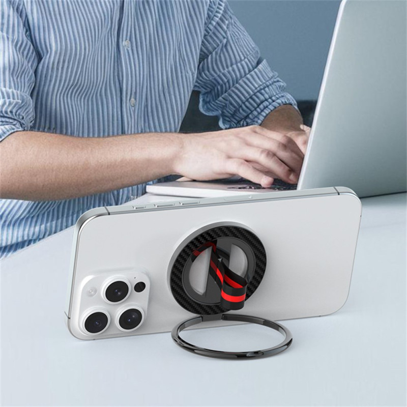 Découvrez notre support téléphone magnétique compatible MagSafe avec rotation 360° et texture fibre de carbone élégante. Design pliable et compact pour une portabilité optimale. Parfait pour tous vos besoins quotidiens !
