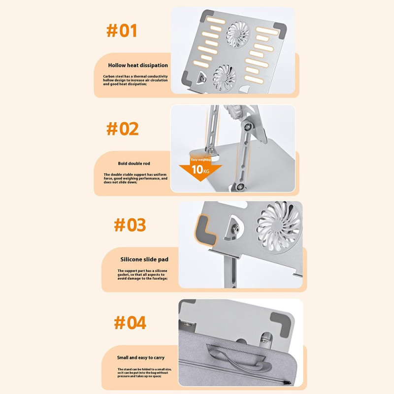 Ce support pour ordinateur portable avec ventilateur intégré offre un confort ergonomique optimal tout en assurant un refroidissement performant. Grâce à sa hauteur ajustable en continu, il permet d’adopter une posture de travail idéale, réduisant la fatigue visuelle et cervicale. Sa structure ajourée associée à un ventilateur puissant améliore considérablement la dissipation thermique, même lors d’utilisations prolongées. Conçu en acier carbone robuste avec des surfaces en silicone antidérapant, il garantit une stabilité parfaite et supporte jusqu’à 10 kg. Pliable et portable, il convient aux appareils jusqu’à 17,3 pouces.
