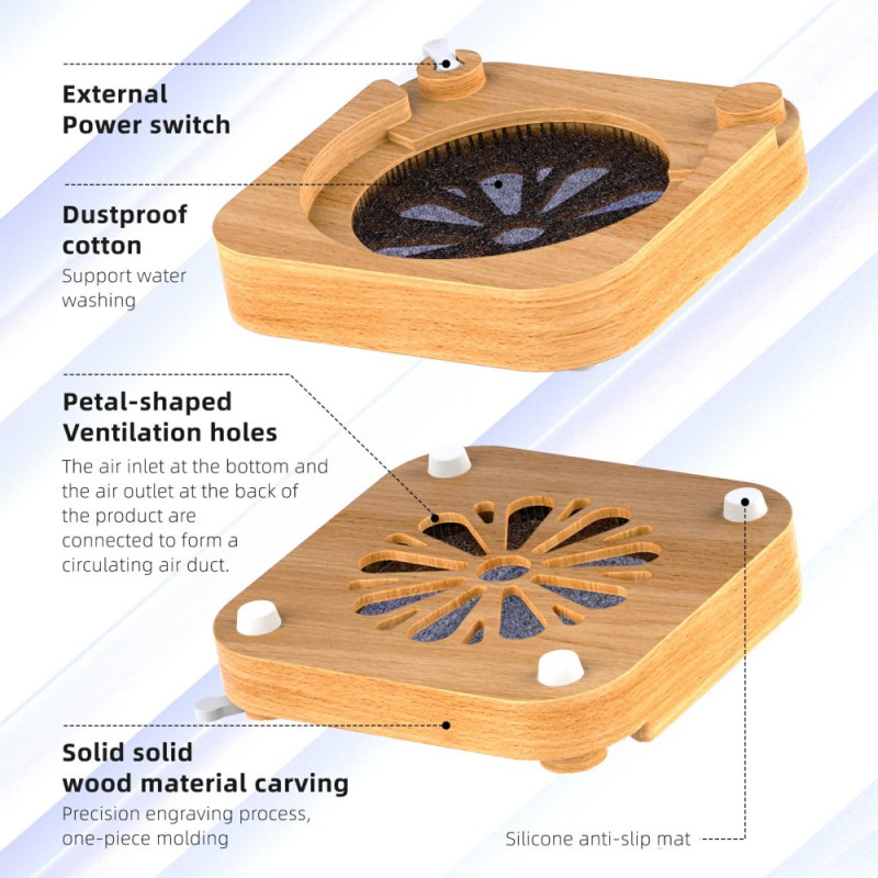 Ce support vertical pour Mac Mini M4 / M4 Pro combine praticité et élégance pour protéger et optimiser votre mini-ordinateur. Doté d’un interrupteur externe, il permet d’allumer ou d’éteindre facilement votre appareil sans avoir à accéder directement au bouton d’origine. Son système anti-poussière avec couche de coton lavable protège efficacement contre la poussière et les poils d’animaux. Grâce à ses ouvertures en forme de pétales et à son conduit d’air circulaire, il améliore le refroidissement. Fabriqué en bois massif sculpté d’une seule pièce, il assure stabilité, durabilité et une présentation raffinée.