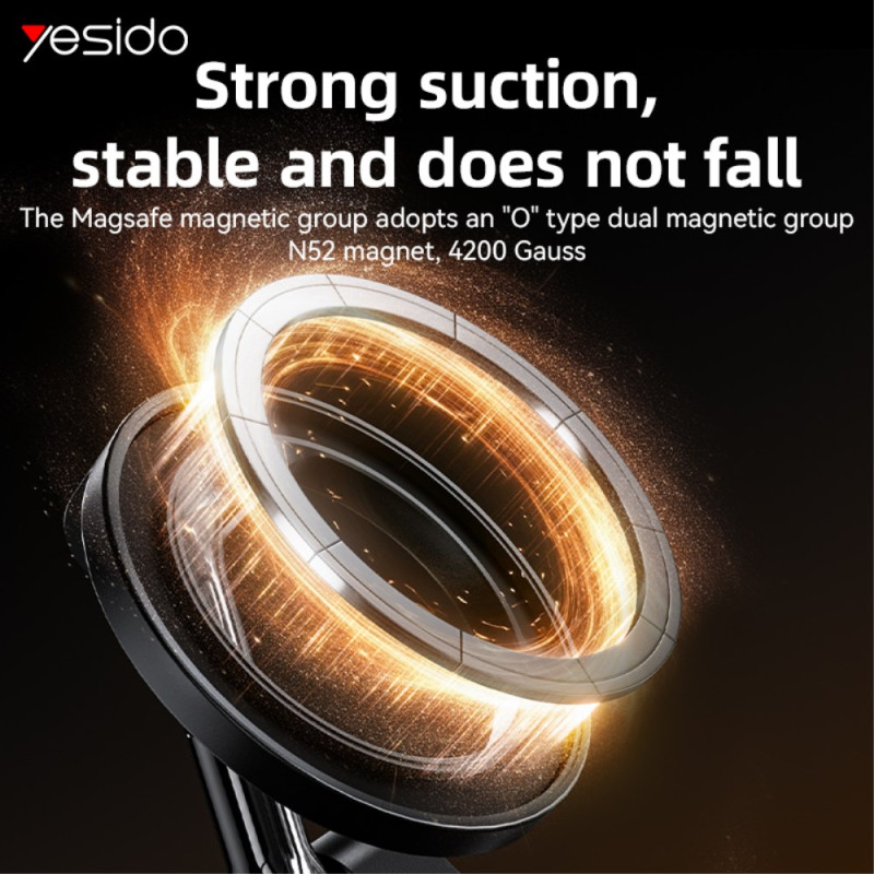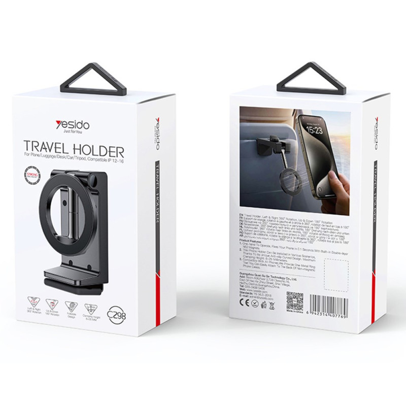 Le support magnétique portable ajustable YESIDO C298 offre une fixation ultra-sécurisée grâce à son système d’aimantation en anneau « O » composé de doubles aimants N52 puissants développant 4200 Gauss. Son axe en alliage de zinc permet une rotation horizontale à 360° et un réglage vertical à 180°, garantissant un angle de vue optimal en toutes circonstances. Compact, léger et facile à utiliser, il s’adapte à une multitude d'environnements : bureau, voiture ou même support de sol. Son bras de serrage en acier extensible assure une tenue ferme, avec une plage de serrage de 8 à 25 mm, idéale pour une utilisation polyvalente en déplacement.