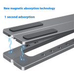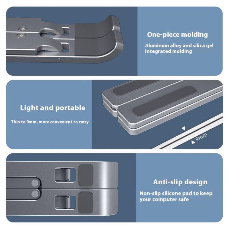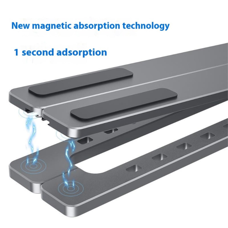 Le support magnétique pliable X3 pour ordinateur portable et tablette a été conçu pour offrir mobilité, stabilité et confort d’usage. Grâce à son ingénieux système magnétique, il se déploie instantanément et se replie en quelques secondes, idéal pour les déplacements. Fabriqué en aluminium de qualité supérieure, il assure une excellente rigidité tout en restant léger, avec seulement 200 g. Ses patins en silicone antidérapants protègent votre appareil et garantissent une utilisation sans glissement. Compatible avec les appareils jusqu’à 17 pouces, il élève votre écran à une hauteur ergonomique, soulageant nuque et épaules.