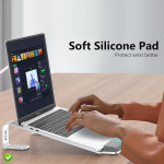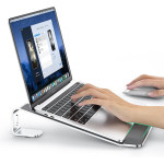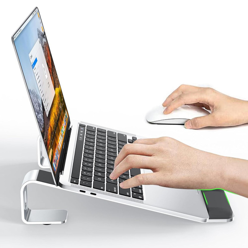 Le support ordinateur portable détachable M8 est conçu pour améliorer votre confort et optimiser votre posture au travail. Son repose-poignets en silicone ergonomique réduit efficacement la fatigue lors des longues sessions de frappe, tandis que sa structure ventilée favorise une circulation d’air constante pour éviter la surchauffe. Sa conception en triangle assure une excellente stabilité, empêchant tout glissement ou oscillation. Fabriqué en alliage d’aluminium de haute qualité, il est à la fois robuste, léger et élégant. Entièrement démontable, il se range facilement et devient un allié idéal pour les professionnels et étudiants en déplacement.