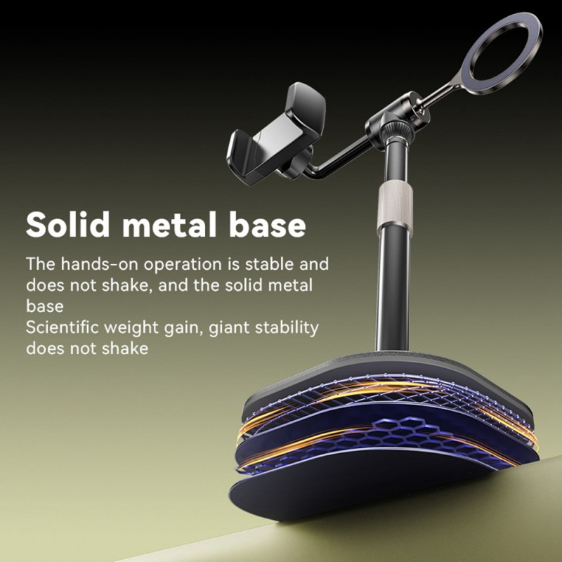 Ce support de bureau réglable pour deux téléphones est idéal pour le streaming, le multitâche et les visioconférences professionnelles. Conçu en métal, PC, ABS et POM de haute qualité, il offre une stabilité exemplaire grâce à sa base en alliage robuste. Son puissant aimant N52 permet une fixation directe et sécurisée des iPhone 12 à 16, tandis que son clip supplémentaire accueille des smartphones de 4,7 à 6,5 pouces. Le bras ajustable en hauteur et la rotule pivotante à 360° offrent une flexibilité totale, permettant d’alterner facilement entre mode horizontal et vertical selon vos besoins.