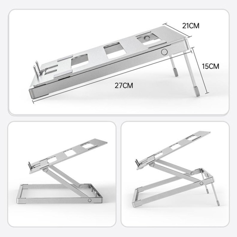 Ce support réglable pour ordinateur portable est conçu pour améliorer ton confort de travail grâce à son élévation ergonomique et son angle ajustable. Fabriqué en alliage d’aluminium robuste, il offre une excellente stabilité et une grande capacité de charge sans risque d’affaissement. Sa structure ajourée favorise la circulation de l’air pour éviter la surchauffe de ton appareil, même lors d’une utilisation prolongée. Léger et pliable, il se transporte facilement du bureau à la maison. Idéal pour améliorer la posture et réduire les tensions du dos, du cou et des bras.