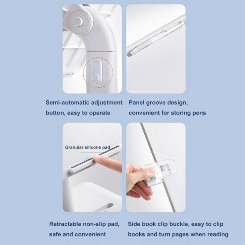 Ce support de lecture pour enfants offre une solution ergonomique idéale pour favoriser une posture correcte lors de l’étude ou de la lecture. Grâce à son cadre épaissi, il assure une excellente stabilité sans vaciller. Son système de réglage semi-automatique permet d’ajuster l’angle rapidement et sans effort, tandis que sa hauteur télescopique s’adapte aux enfants de différents âges. La plaque inclinable peut se transformer en surface plate pour être utilisée comme petit bureau. Léger et facile à assembler, il comprend une rainure porte-stylo et des clips latéraux antidérapants pour maintenir livres et fournitures bien en place.