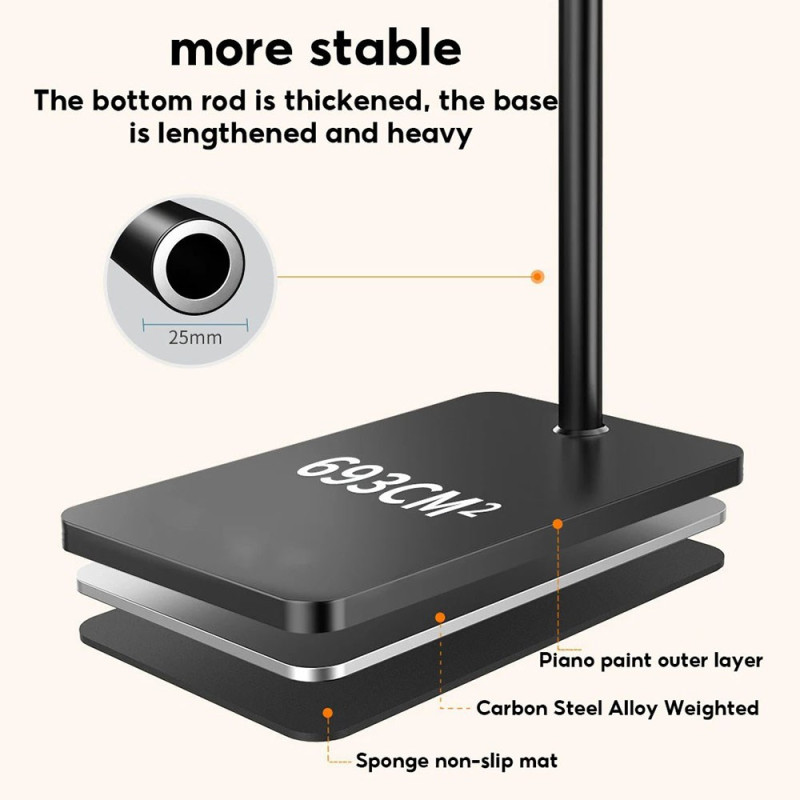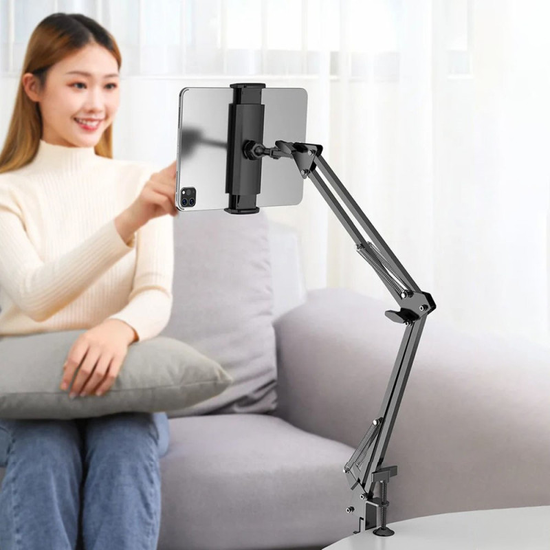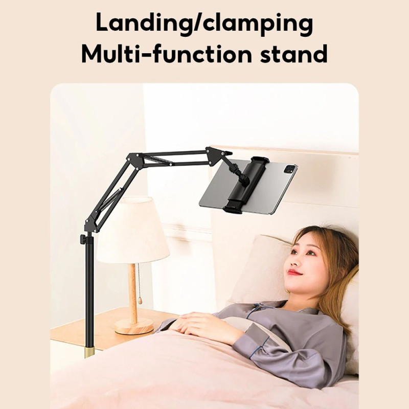 Profitez d'un confort optimal avec ce support de sol télescopique réglable en hauteur jusqu'à 1.6m. Son bras flexible et sa rotation à 360° permettent un positionnement parfait de votre appareil. Construction robuste en acier et ABS pour une stabilité maximale.