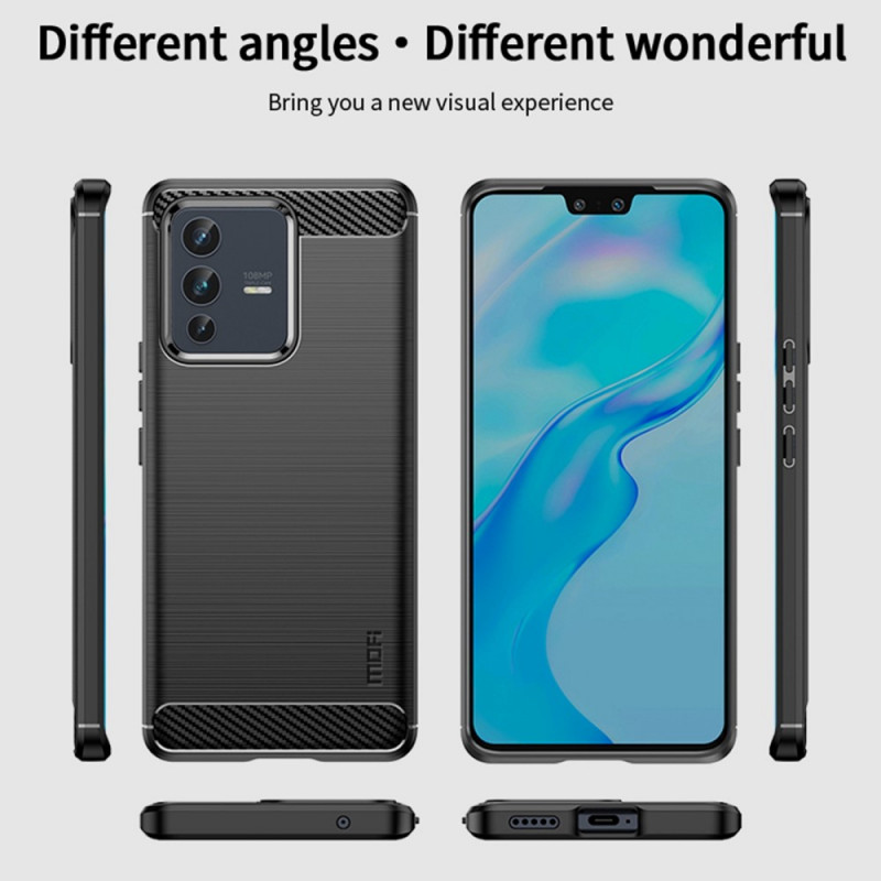 Cette coque en fibre carbone brossée de chez Mofi protège parfaitement le dos et les rebords du Vivo V23 5G.