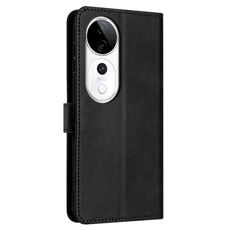 Étui portefeuille élégant en cuir PU texturé pour votre smartphone Vivo V40 Lite 5G. Protection intégrale avec texture grain de veau, fonction support ajustable et fermeture magnétique sécurisée. Dispose de 3 emplacements pour cartes et une poche pour espèces.