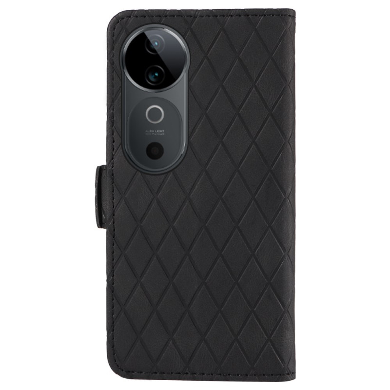 Étui élégant pour Vivo V40 5G avec motif losange matelassé. Conception bi-matière combinant cuir PU et TPU pour un style raffiné et une protection durable. Trois emplacements pour cartes et compartiment latéral intégré pour une solution pratique tout-en-un.