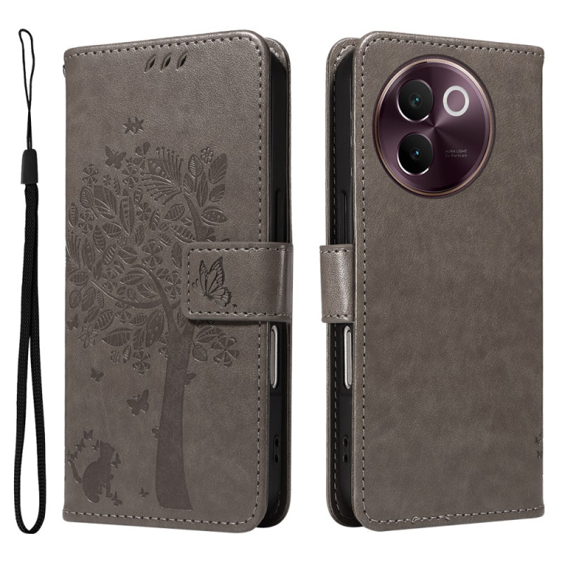 Protégez votre Vivo V40 Lite 5G avec élégance grâce à cet étui portefeuille multifonction. Son design raffiné orné d'un motif chat et arbre, ses emplacements pour cartes et son support intégré en font l'accessoire idéal au quotidien.