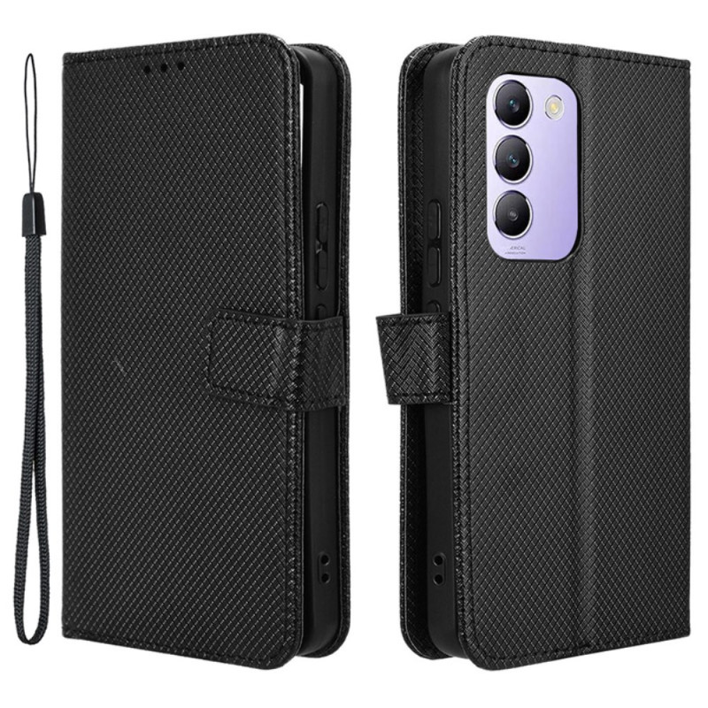 Découvrez cet étui à rabat élégant avec texture diamant pour votre smartphone Vivo V40 SE 5G. Doté de fentes pour cartes, d'un support pliable et d'une fermeture magnétique, il allie style et fonctionnalité. Protection intégrale contre les chocs et rayures.