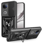 Protégez votre Vivo V50 5G avec cette coque robuste dotée d'une protection caméra coulissante innovante, d'une béquille rotative à 360° et d'une résistance militaire aux chocs. Compatible support magnétique pour voiture.
