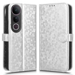 Étui portefeuille élégant en cuir PU avec motif de points en relief pour Vivo V50 Lite 5G. Design sophistiqué offrant protection, rangement pratique pour cartes et argent, fonction support ajustable et dragonne incluse pour un transport sécurisé.