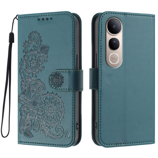 Étui portefeuille élégant en cuir PU avec motif mandala pour Vivo V50 Lite. Protection antichoc, fermeture magnétique double face, support intégré et dragonne pratique. Combine votre téléphone et portefeuille en un seul accessoire.