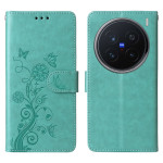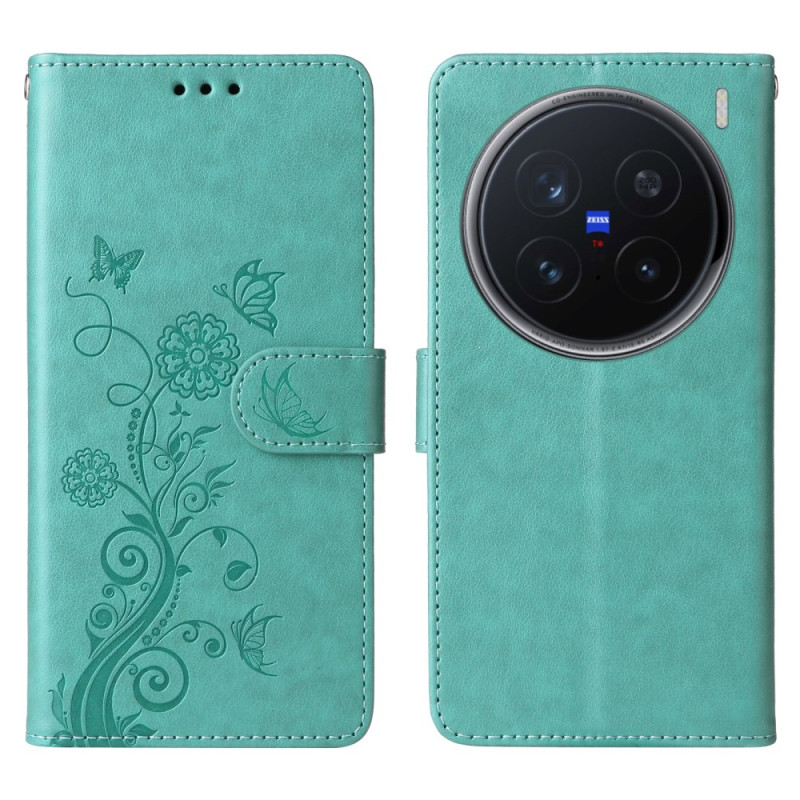 Étui élégant en simili cuir pour Vivo X200 Pro 5G avec impression florale et papillon. Dispose d'un support intégré, de fentes pour cartes et d'un compartiment portefeuille. Protection complète avec dragonne pratique pour un transport facile.