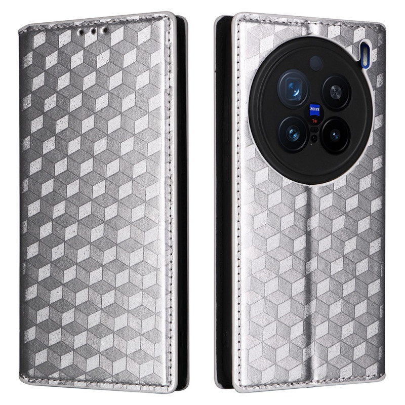 Étui portefeuille élégant en cuir PU avec motif losange 3D pour Vivo X200 Pro 5G. Dispose de 2 fentes pour cartes, support de vue ajustable et fermeture magnétique sécurisée. Protection intégrale à 360° contre les chocs et rayures.