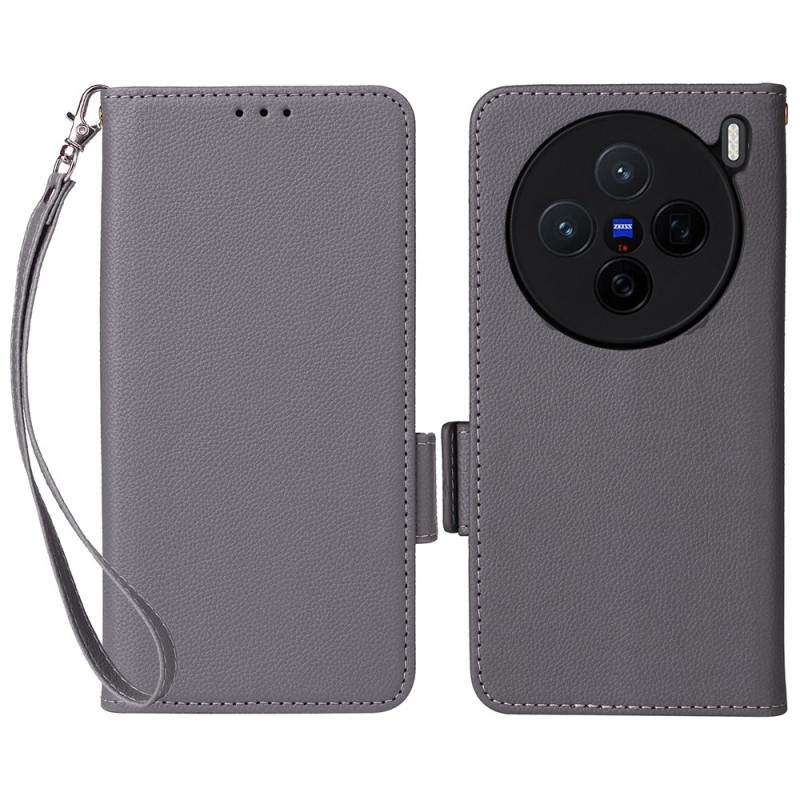 Étui portefeuille élégant en cuir PU texture litchi pour Vivo X200 5G. Comprend des emplacements pour cartes, support mains libres et dragonne pratique. Protection complète avec fermeture magnétique sécurisée pour un usage quotidien optimal.