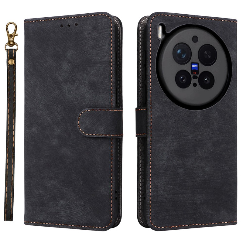 Étui portefeuille élégant en cuir PU pour Vivo X300 Pro 5G avec blocage RFID, 3 emplacements pour cartes, support mains libres et dragonne. Protection complète contre les chocs quotidiens avec fermeture magnétique sécurisée.