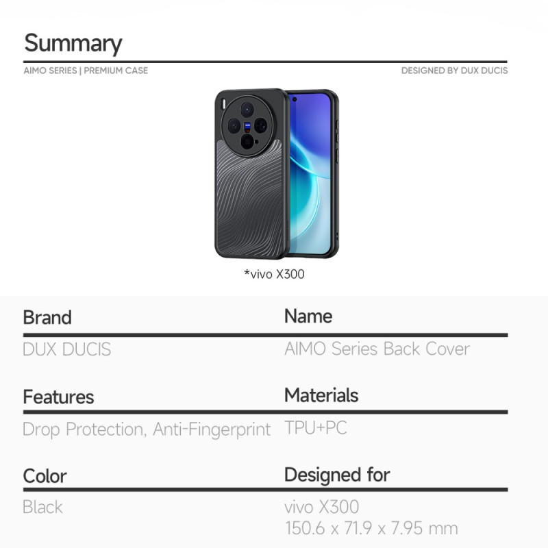 Protégez votre vivo X300 5G avec style grâce à la coque DUX DUCIS Aimo. Alliant robustesse et élégance, cette coque antichoc offre une prise en main confortable et une protection optimale contre les chutes jusqu'à 1,2m (certifié SGS).