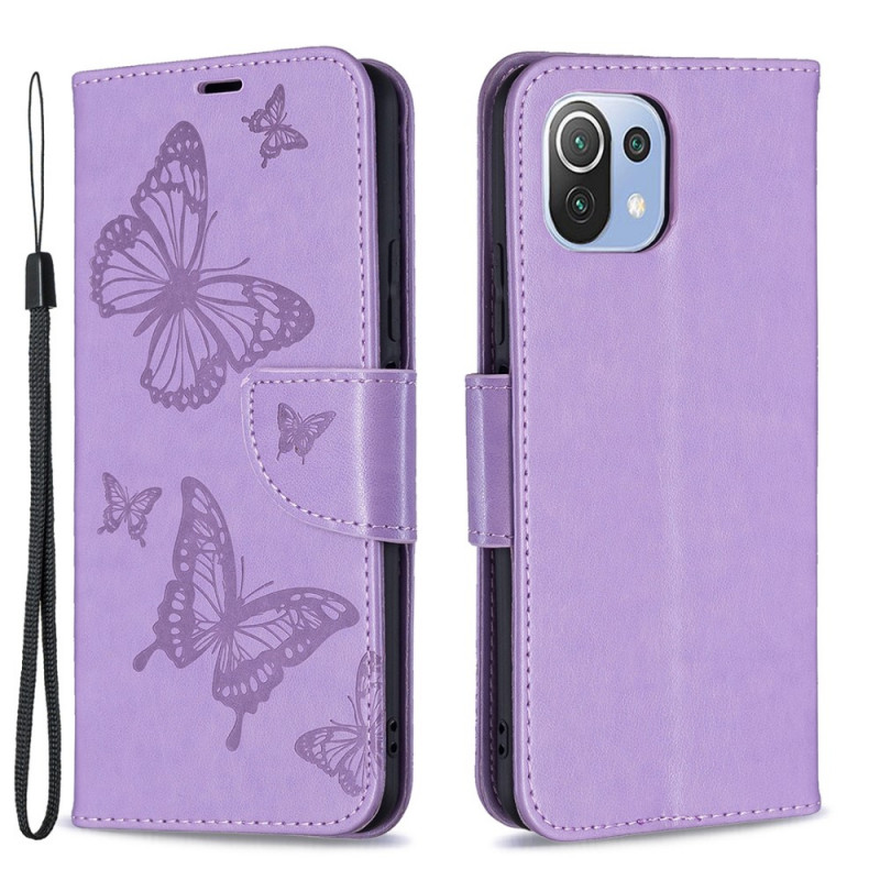 La housse en simili cuir Papillons imprimés vient avec une lanière pratique pour transporter le Xiaomi 11 Lite 5G NE/Mi 11 Lite 4G/5G.