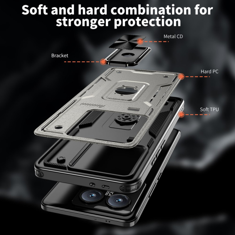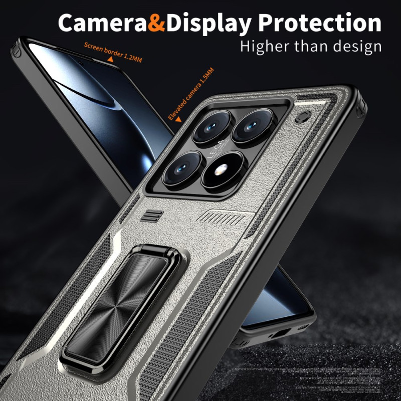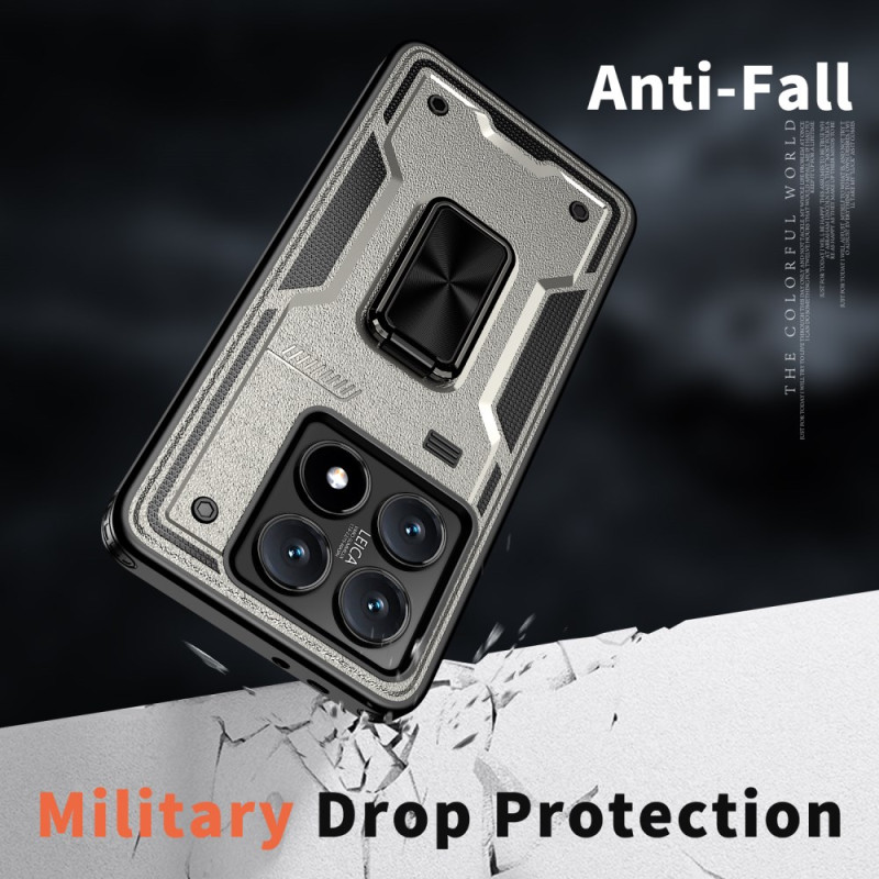 Découvrez notre coque de protection innovante pour Xiaomi 14T. Dotée d'un support anneau rotatif à 360°, elle offre une protection militaire contre les chutes, combine TPU souple et PC dur, et est compatible avec les supports magnétiques pour voiture. Ses bords surélevés protègent l'écran et la caméra des rayures.