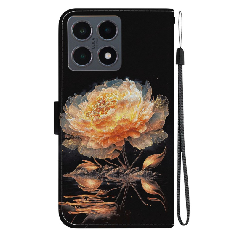 Découvrez notre étui portefeuille luxueux pour Xiaomi 15T, alliant style et fonctionnalité. Fabriqué en cuir PU de haute qualité avec un superbe imprimé de pivoine dorée, il offre une protection complète tout en servant de support pratique pour votre téléphone. Avec des emplacements pour cartes et une sangle, c'est l'accessoire parfait pour votre quotidien.