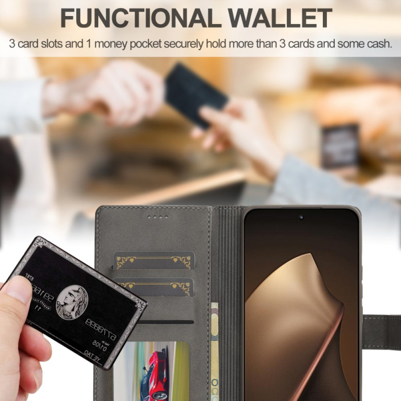 Étui portefeuille en cuir PU texturé veau pour Xiaomi 15T. Protection complète avec support intégré, fermoir magnétique et compartiments pour cartes et argent. Parfait pour une utilisation quotidienne, alliant style et fonctionnalité.